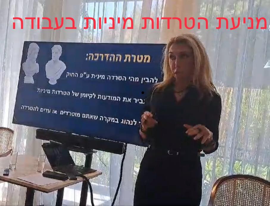ההדרכה, המועברת על ידי עו״ד, אורכת כשעה וכוללת הסבר מפורט ופרקטי על הגדרות החוק: מהי הטרדה מינית, התנכלות והתעמרות.